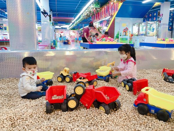 Tư duy logic: Bé tự tạo ra các mô hình, công trình xây dựng (như lâu đài, đường hầm) với các dụng cụ đi kèm (xẻng, xô, xe tải).