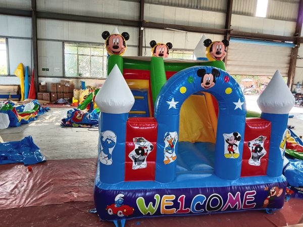 Nhà phao mini khu vui chơi: Thường có kích thước nhỏ, phù hợp cho không gian hạn chế như khu vui chơi trong nhà, ngoài trời, công viên, quán café, quán ăn, trung tâm tiêm chủng có kich thước 3mx4m, 3mx5m, 4mx5m..